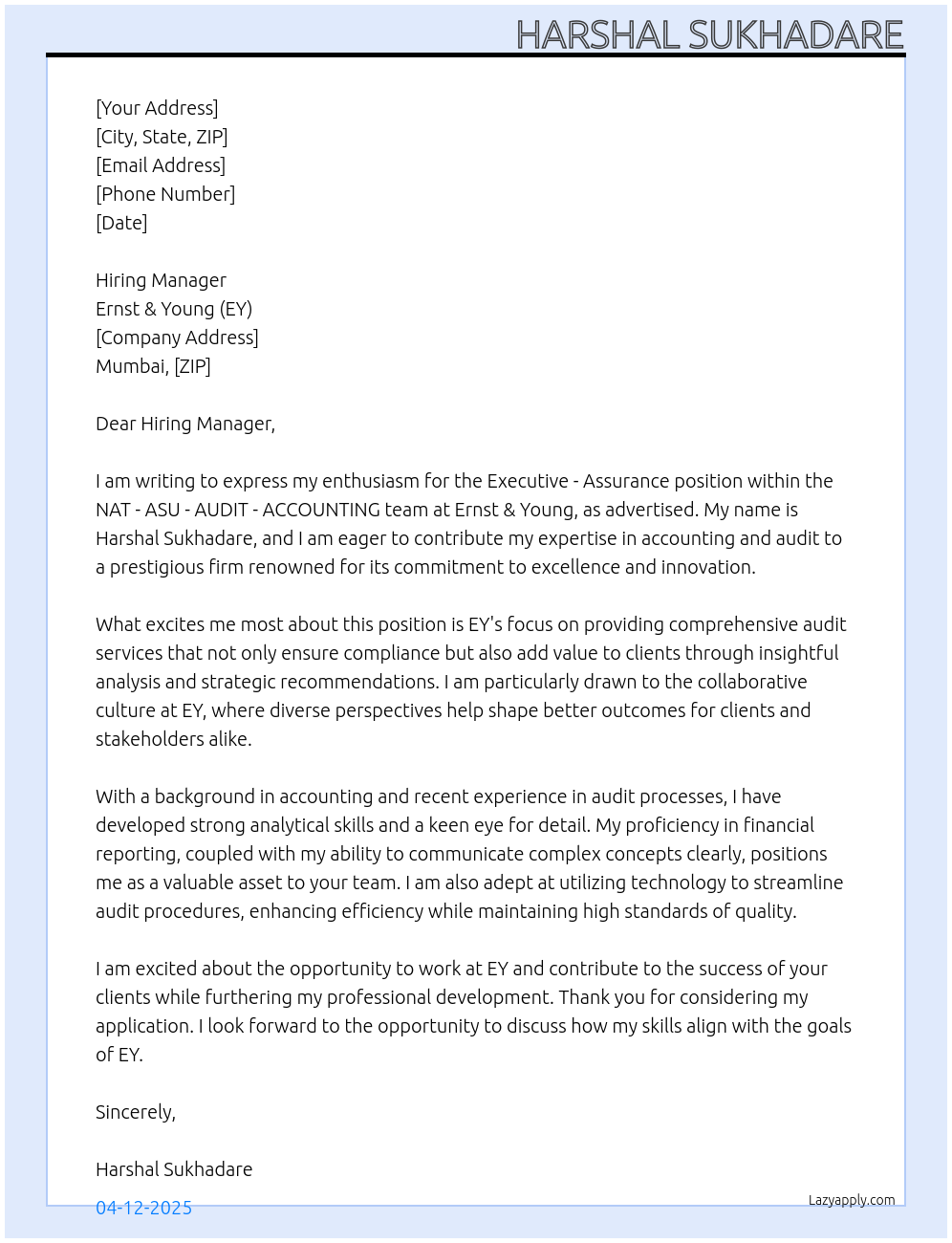 Executive - Assurance - Nat - Asu - Audit - Accounting - Mumbai Cover Letter Examples And Template