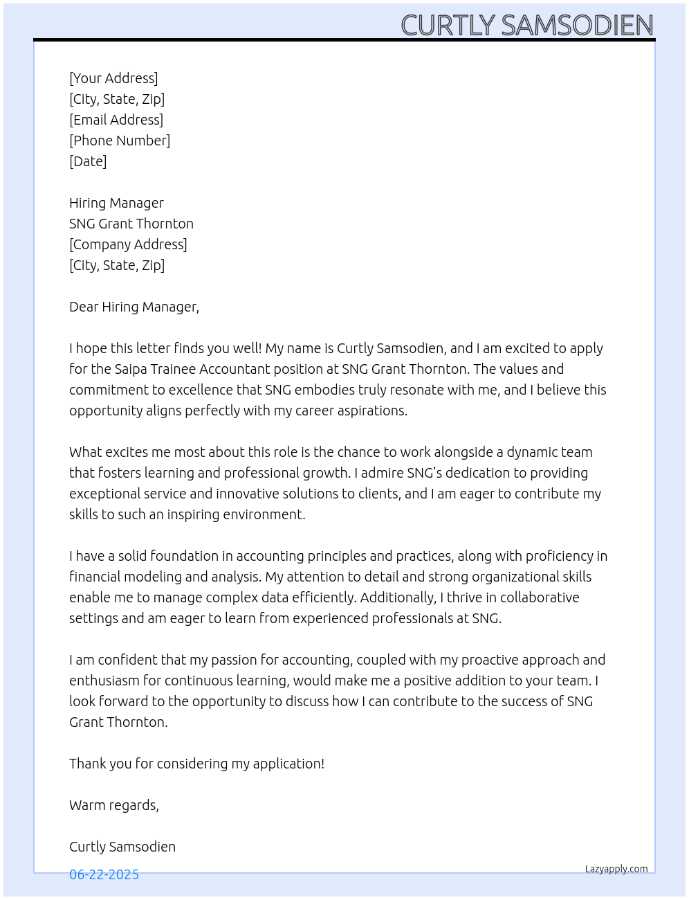 Saipa trainee accountant Cover Letter At SNG GrantThornton