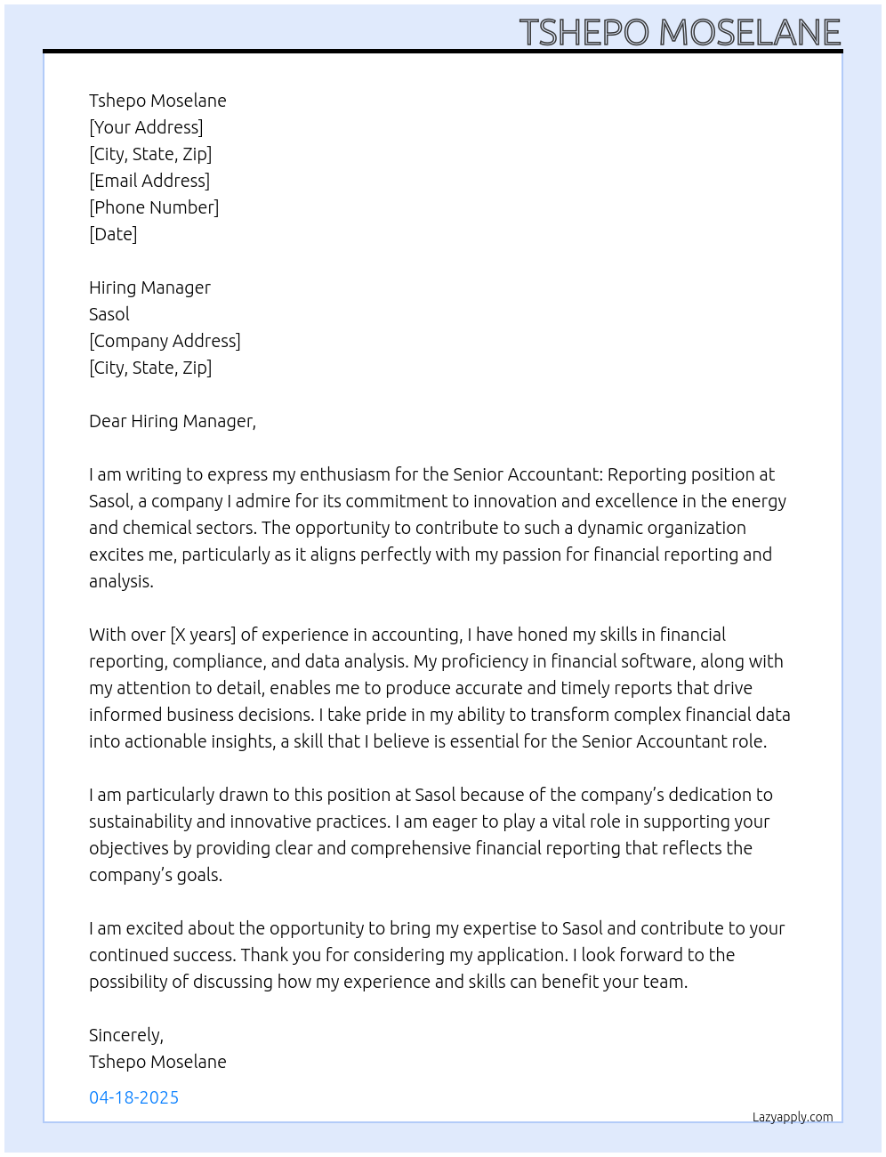 Senior Accountant: Reporting Cover Letter Examples And Template