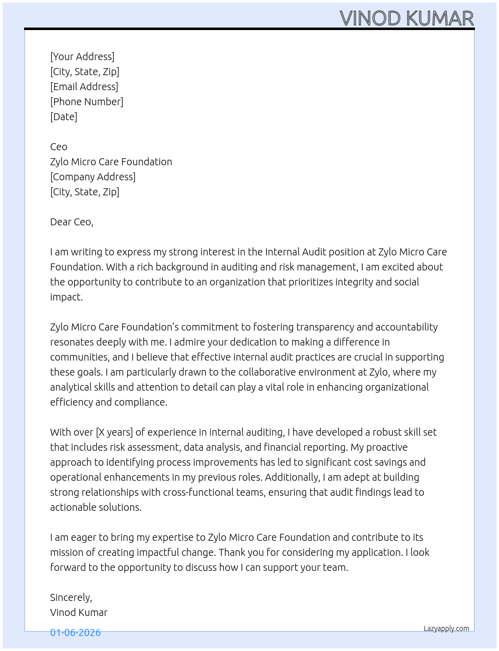 I am writing to express my interest in the Internal Audit position within Development Bank of Singapore Limited