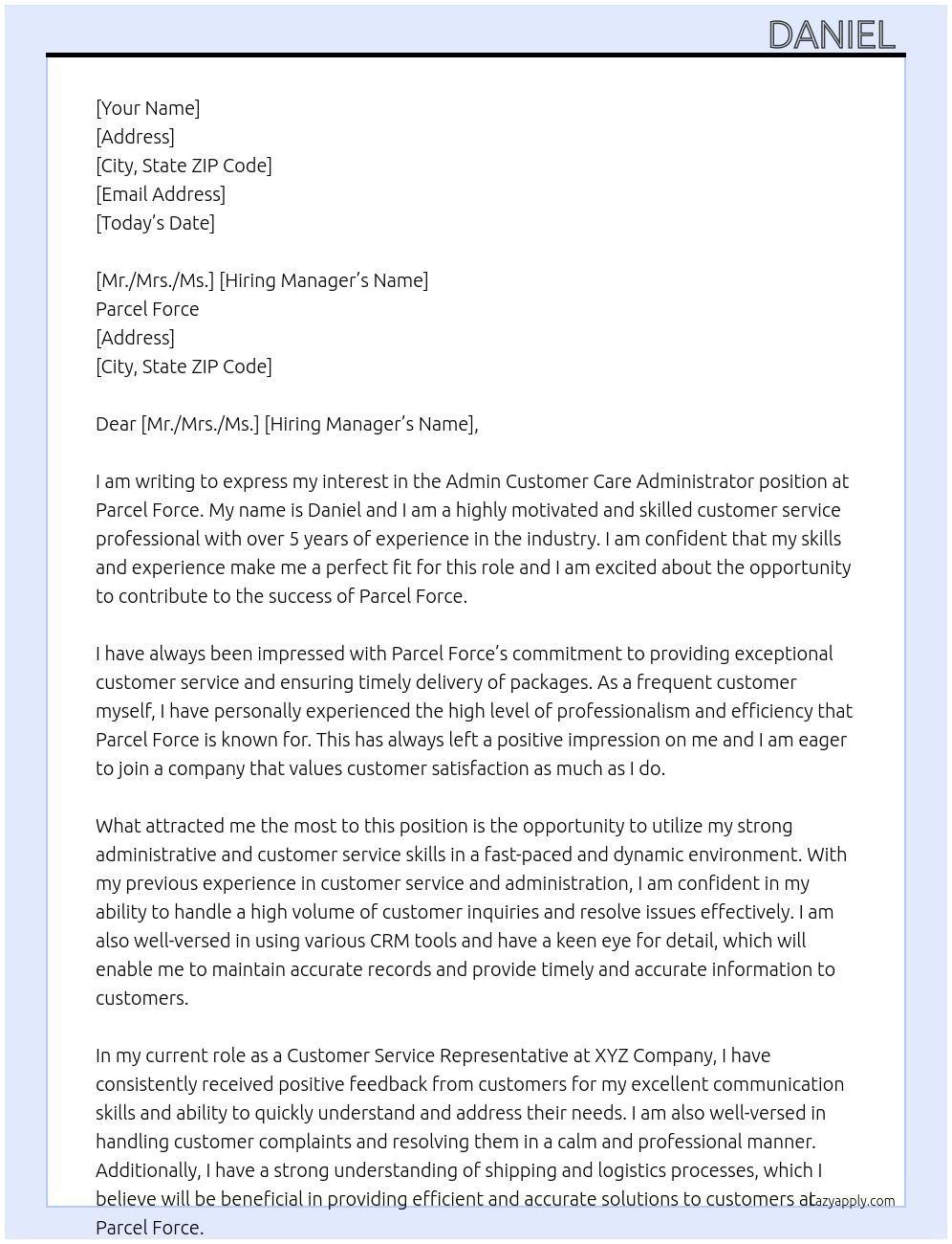 Admin Customer Care Administrator Cover Letter Examples And Template