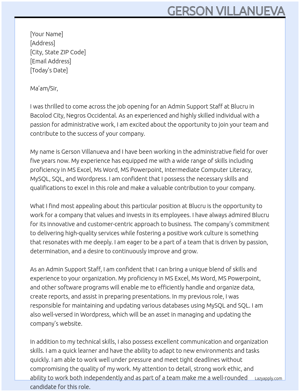 Admin Support Staff Cover Letter At Generalist/Admin Support Staff