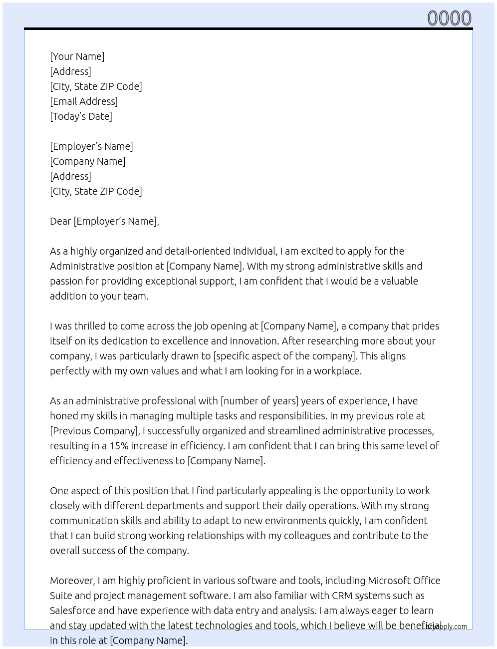 Adminisrative Cover Letter