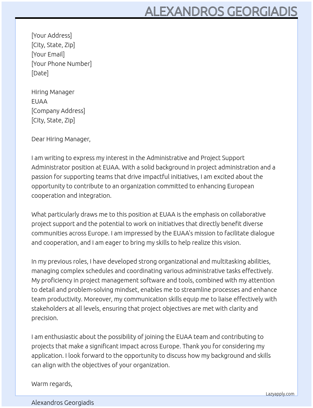 Administrative and Project Support Administrator Cover Letter At EUAA
