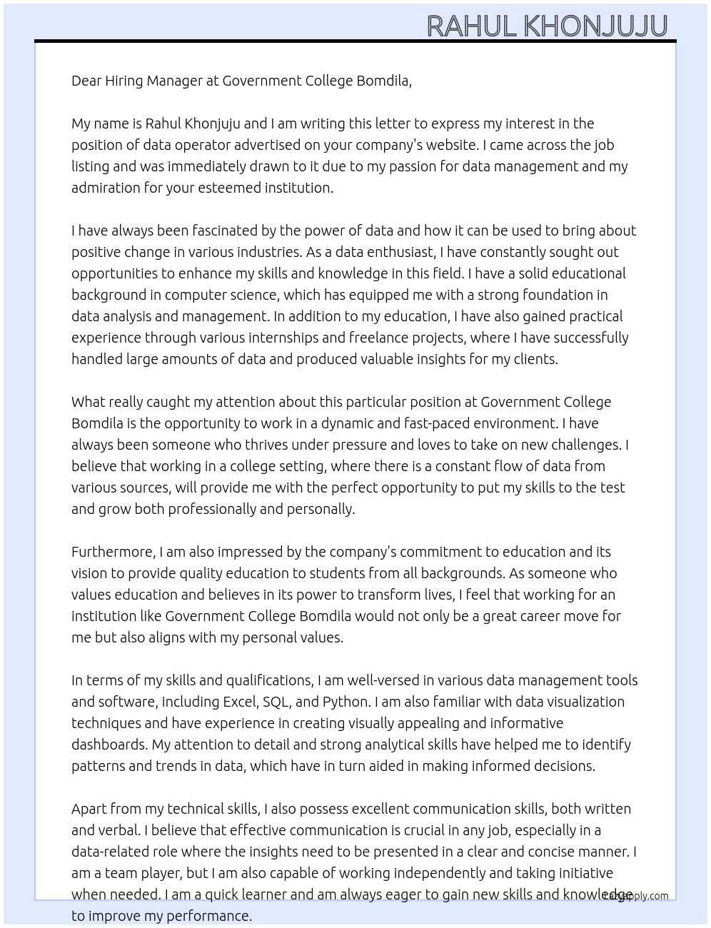 Advertisement for the position of data operator Cover Letter At Government college bomdila