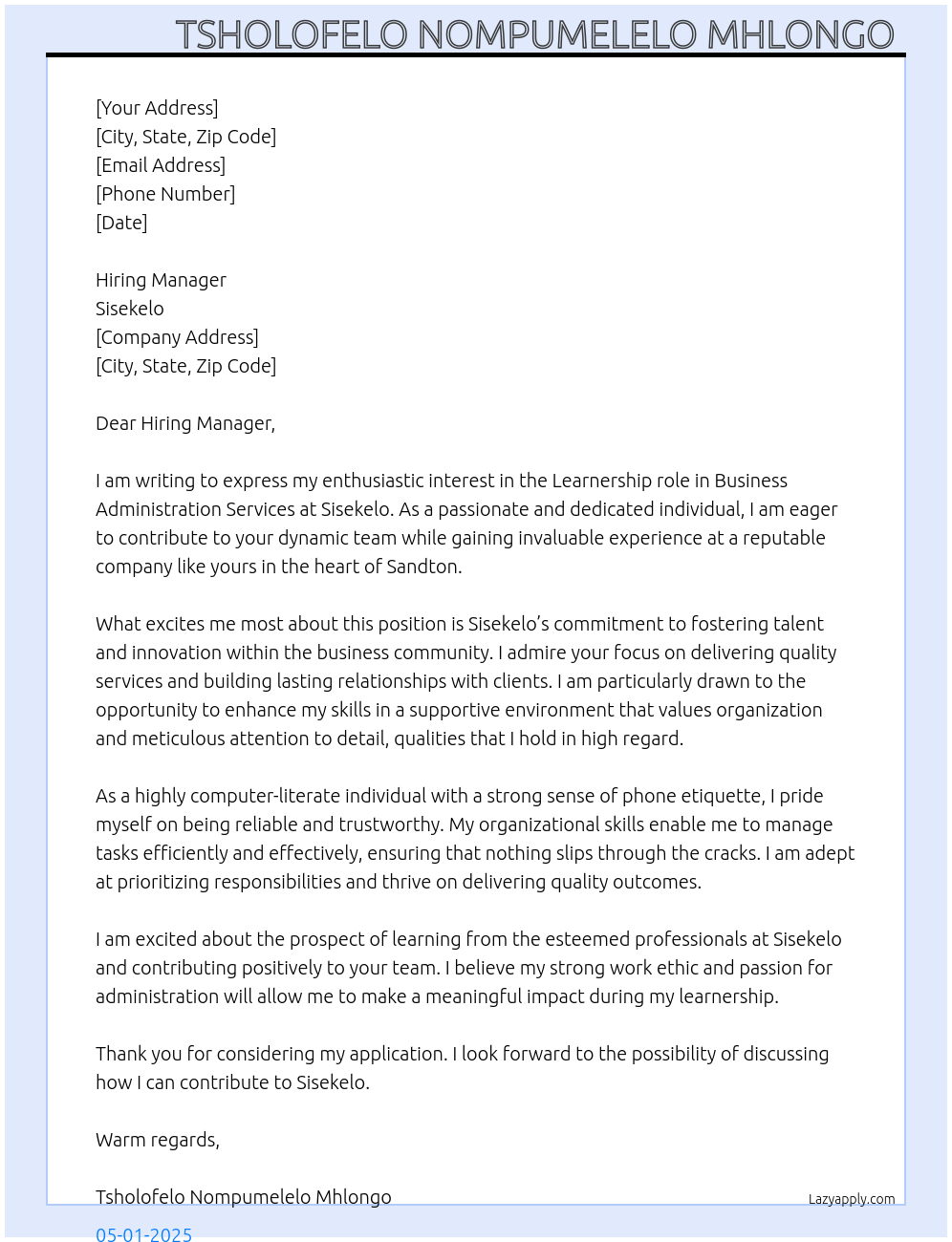 Check out these business administration services cover letter sample and examples previously used by job seekers to land on job interviews as business administration services. Use our AI cover letter generator to create a personalized cover letter as business administration services.