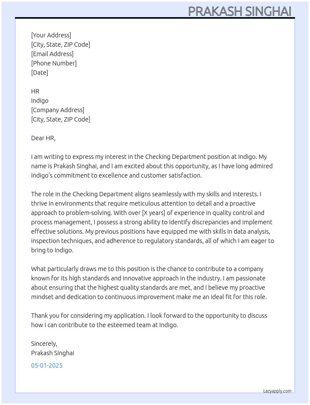 Check out these checking department cover letter sample and examples previously used by job seekers to land on job interviews as checking department. Use our AI cover letter generator to create a personalized cover letter as checking department.