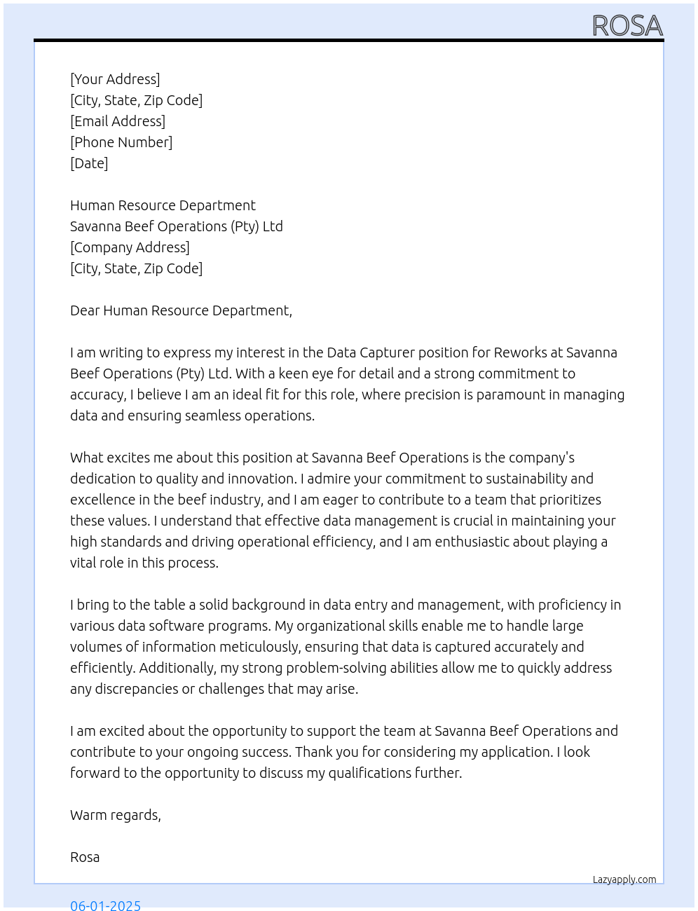 Cover letter for data capturer ,reworks - LazyApply
