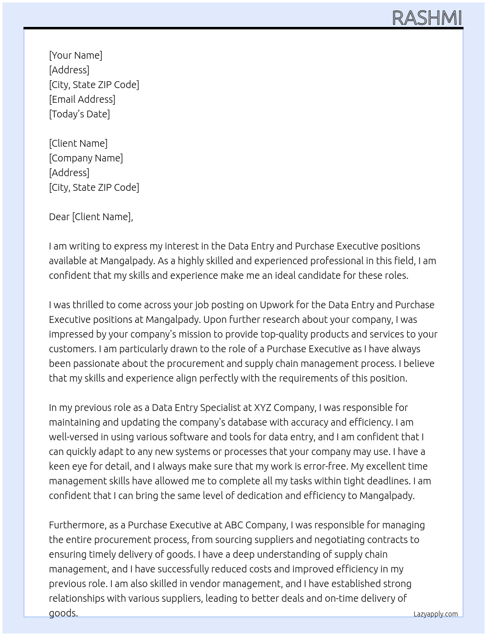 Data Enntry,purchase Executive Cover Letter Examples And Template