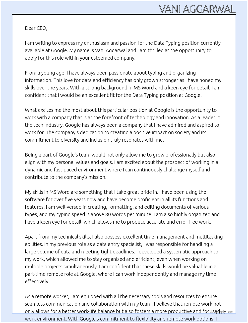 Data Typing Cover Letter