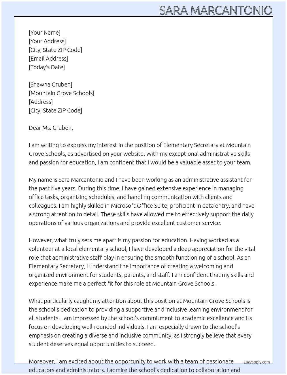 Elementary Secretary Cover Letter At Mountain Grove Schools