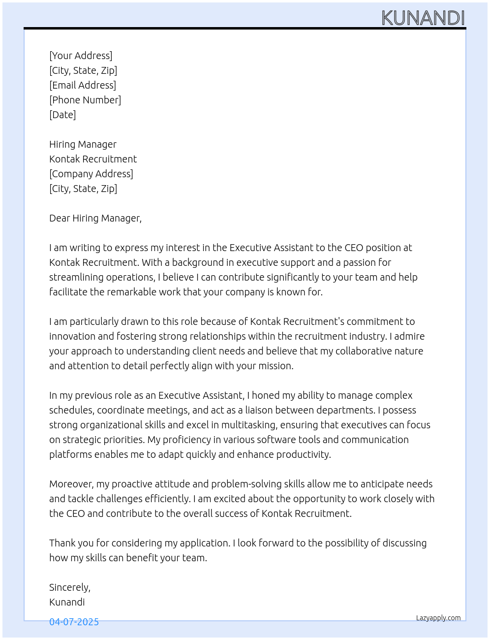 and correspondence for the CEO