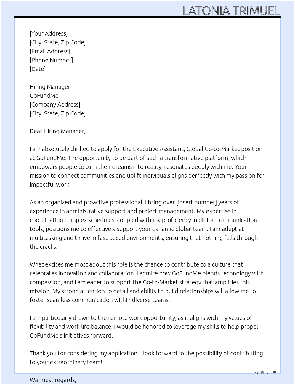 Executive Assistant, Global Go-to-Market Cover Letter At gofundme