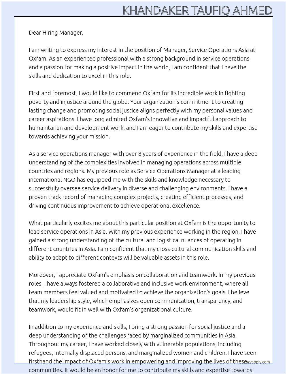 Manager, Service Operations Asia Cover Letter At Oxfam