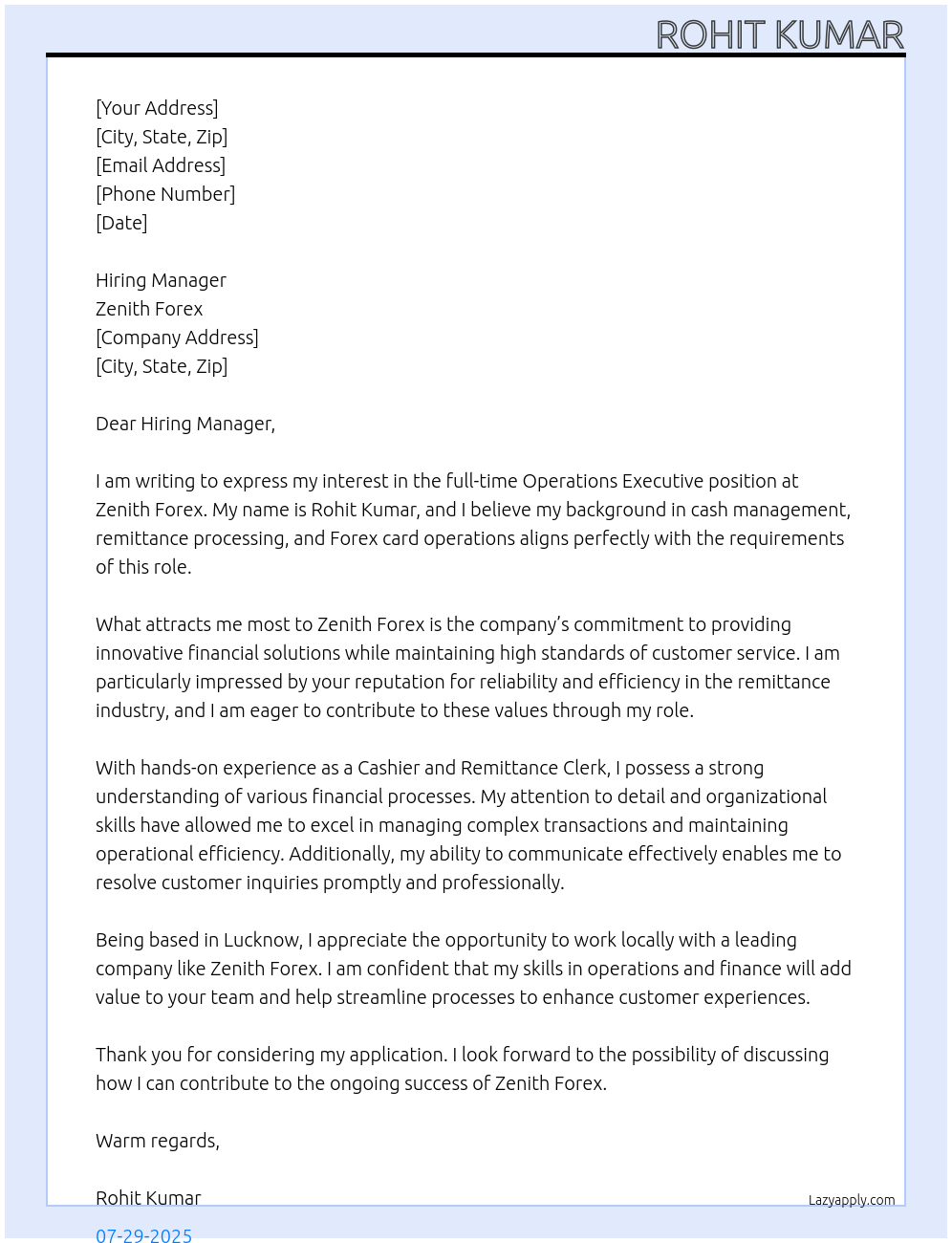 Cover letter for operation excutive - LazyApply