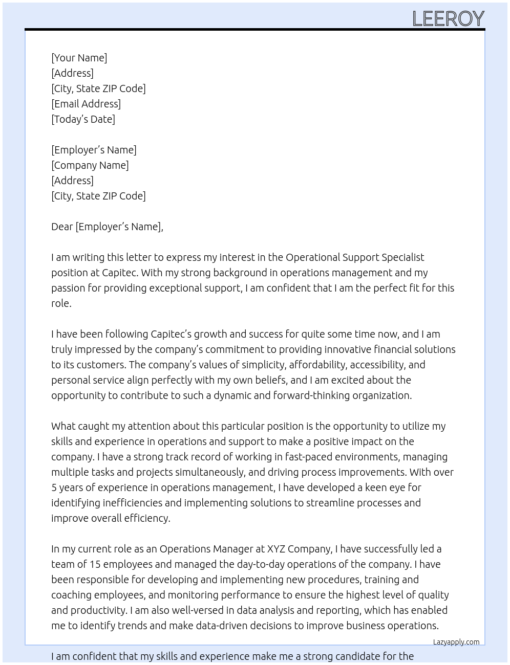 Operational Support Specialist Cover Letter At capitec