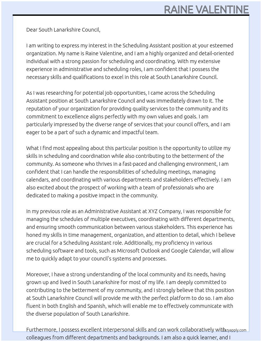 Scheduling Assistant Cover Letter At South Lanarkshire Council