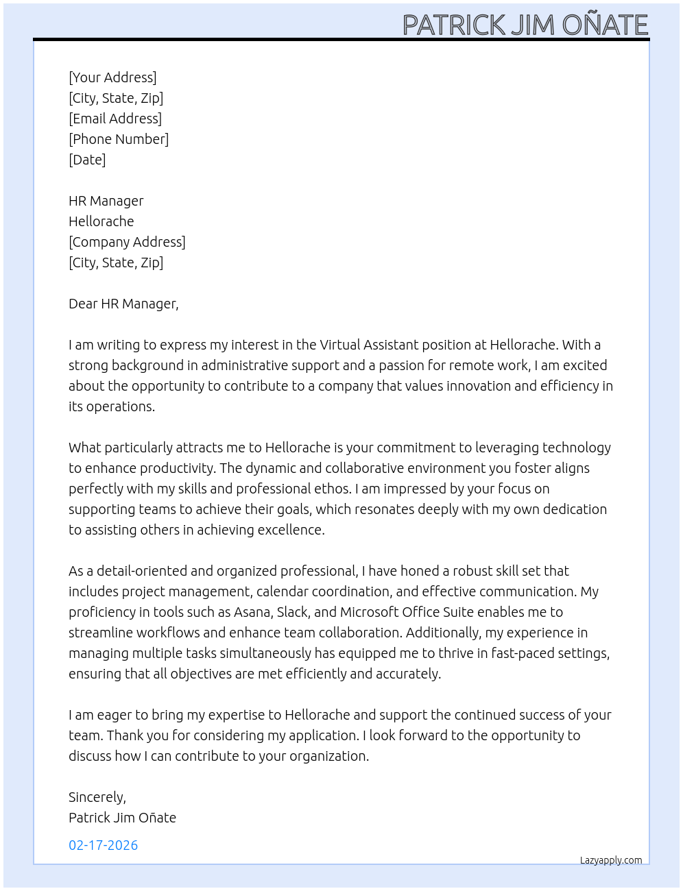 Cover letter for virtual assistant - LazyApply
