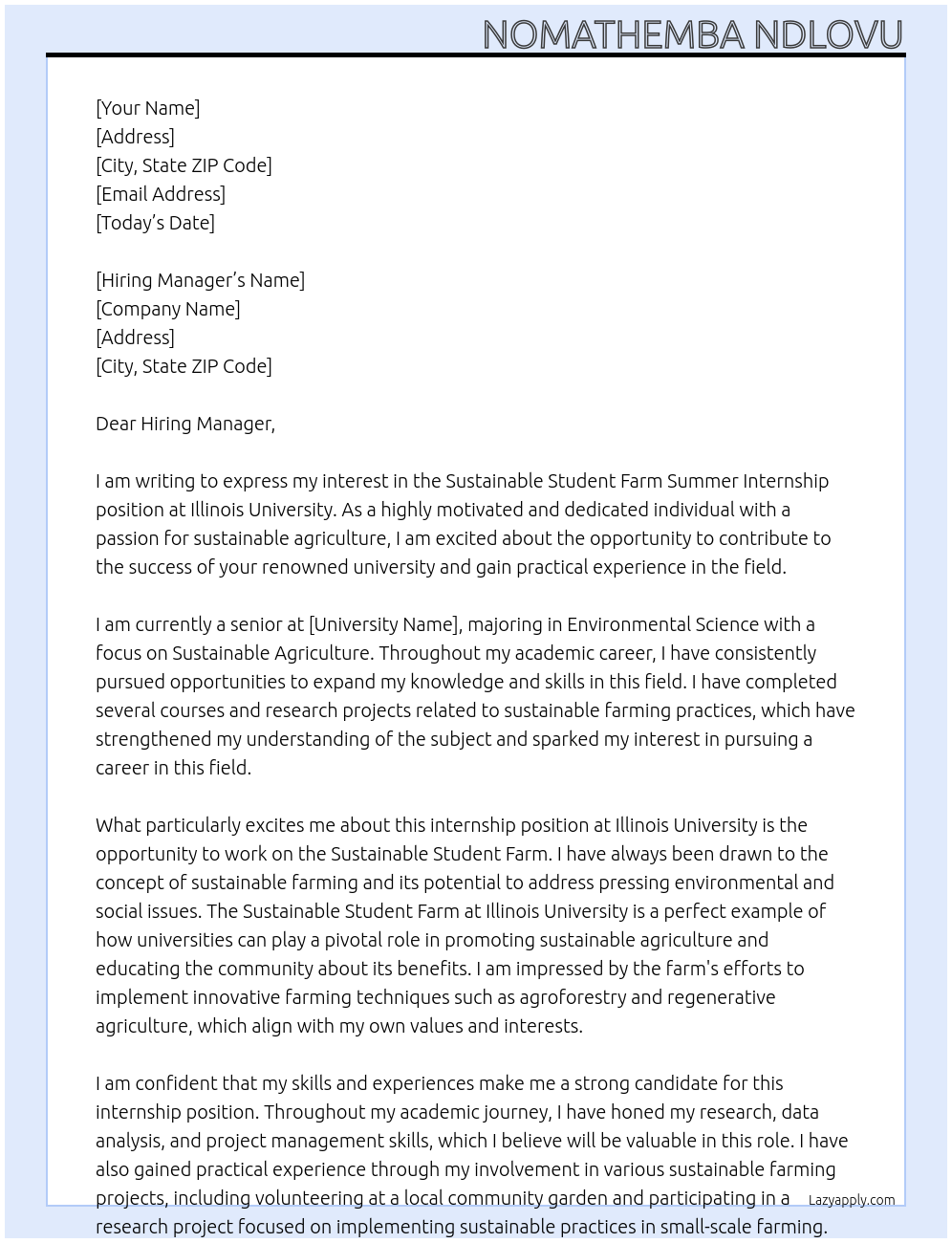 Sustainable Student Farm Summer Internship Cover Letter Examples And Template