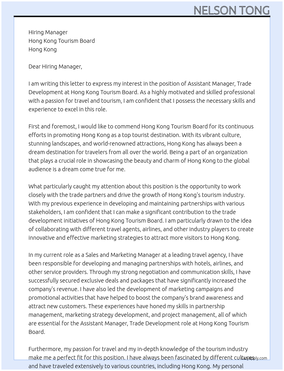Assistant Manager, Trade Development Cover Letter At Hong Kong Tourism Board