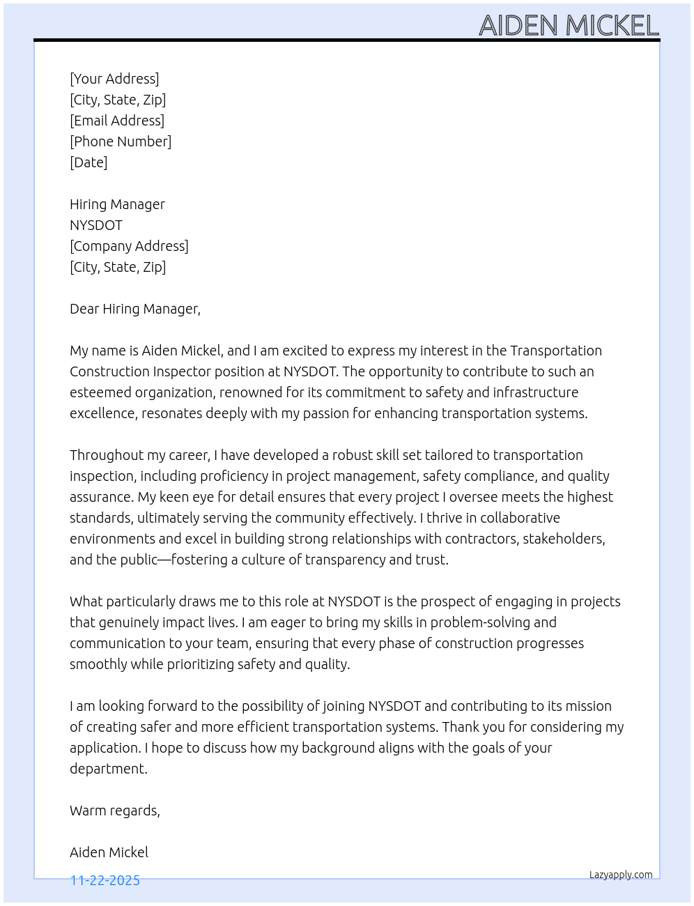 Transportation Construction Inspector Cover Letter At NYSDOT