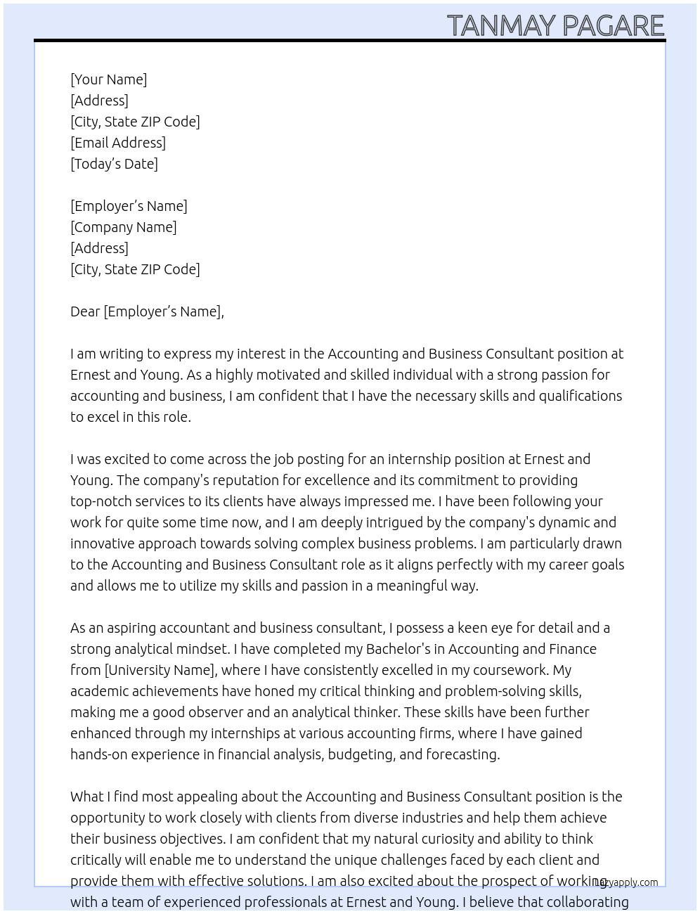Accounting and Business Consultant Cover Letter At Ernest and Young