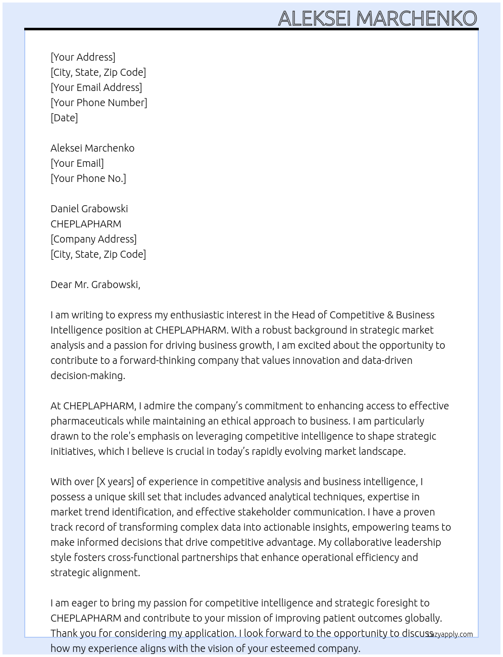 Head of Competitive & Business Intelligence Cover Letter At CHEPLAPHARM