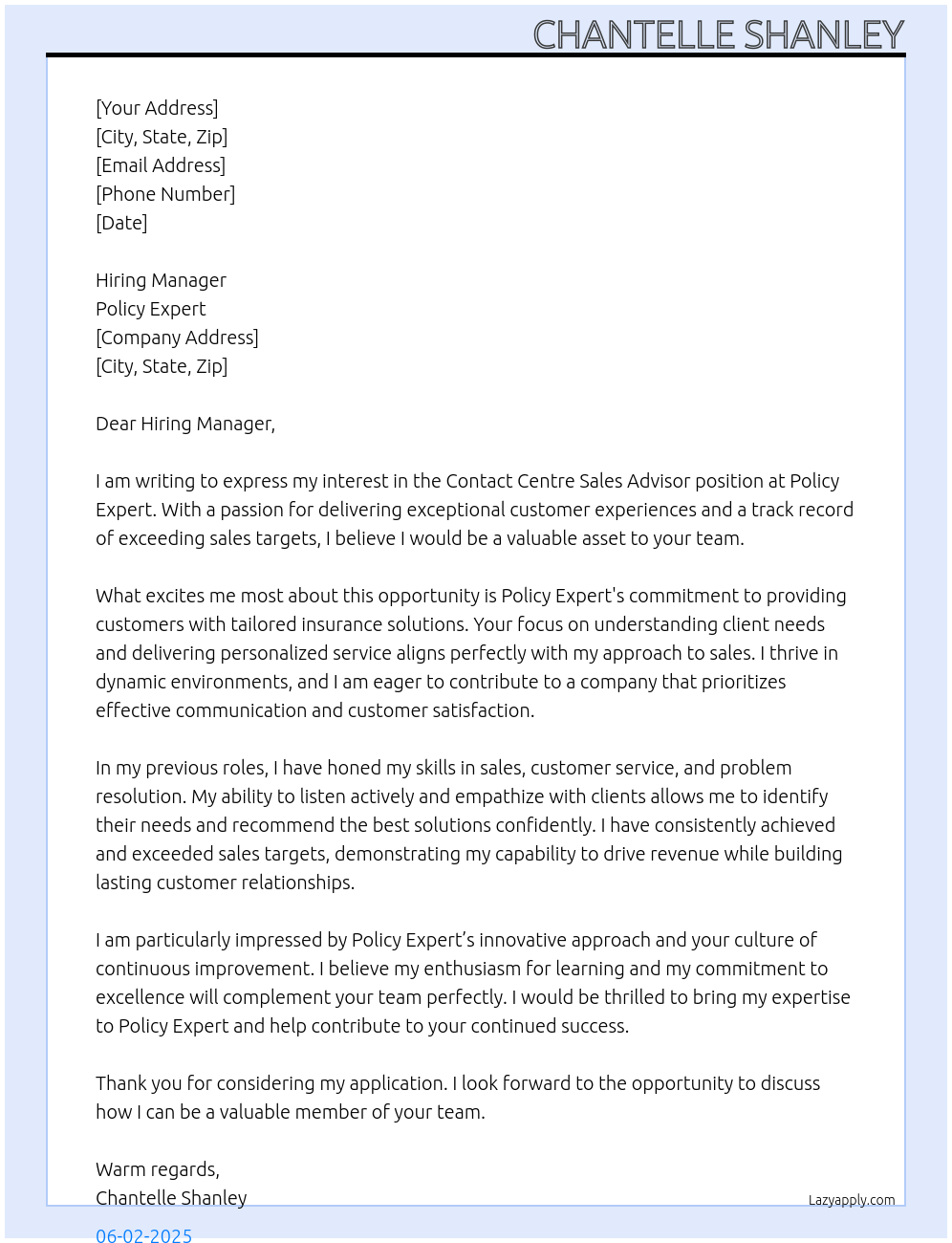 Contact Centre Sales Advisor Cover Letter At Policy Expert