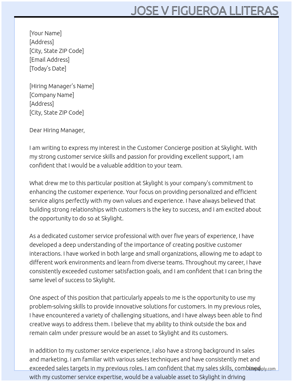 Customer Concierge Cover Letter At Skylight