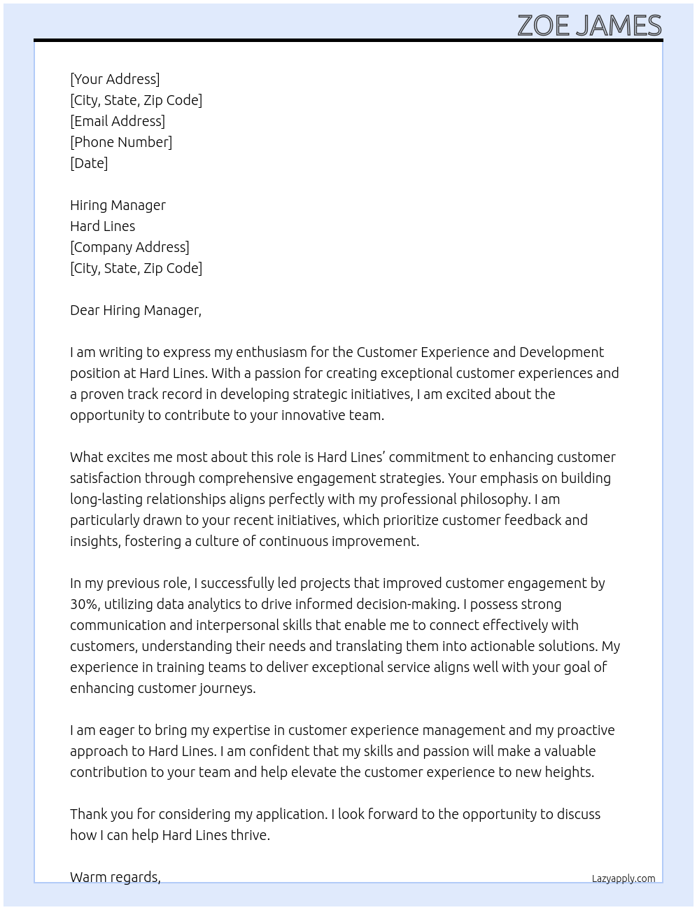 Customer Experience and Development Cover Letter At Hard Lines