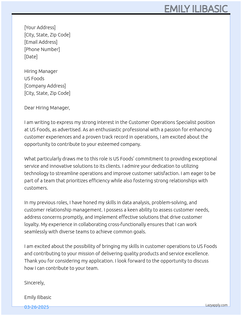 Check out these customer operations specialist cover letter sample and examples previously used by job seekers to land on job interviews as customer operations specialist. Use our AI cover letter generator to create a personalized cover letter as customer operations specialist.