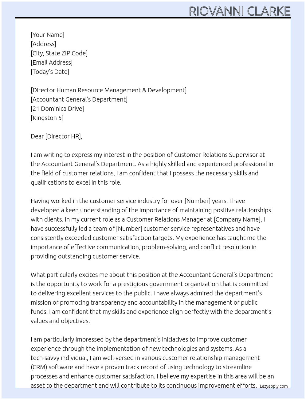 Customer Relations Supervisor Cover Letter At Accountant General’s Department