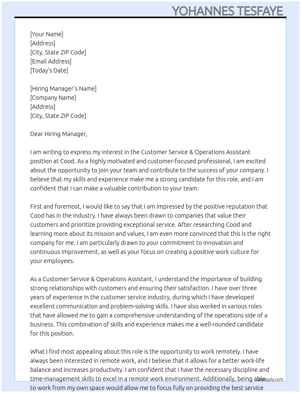Customer Service & Operations Assistant Cover Letter Examples And Template