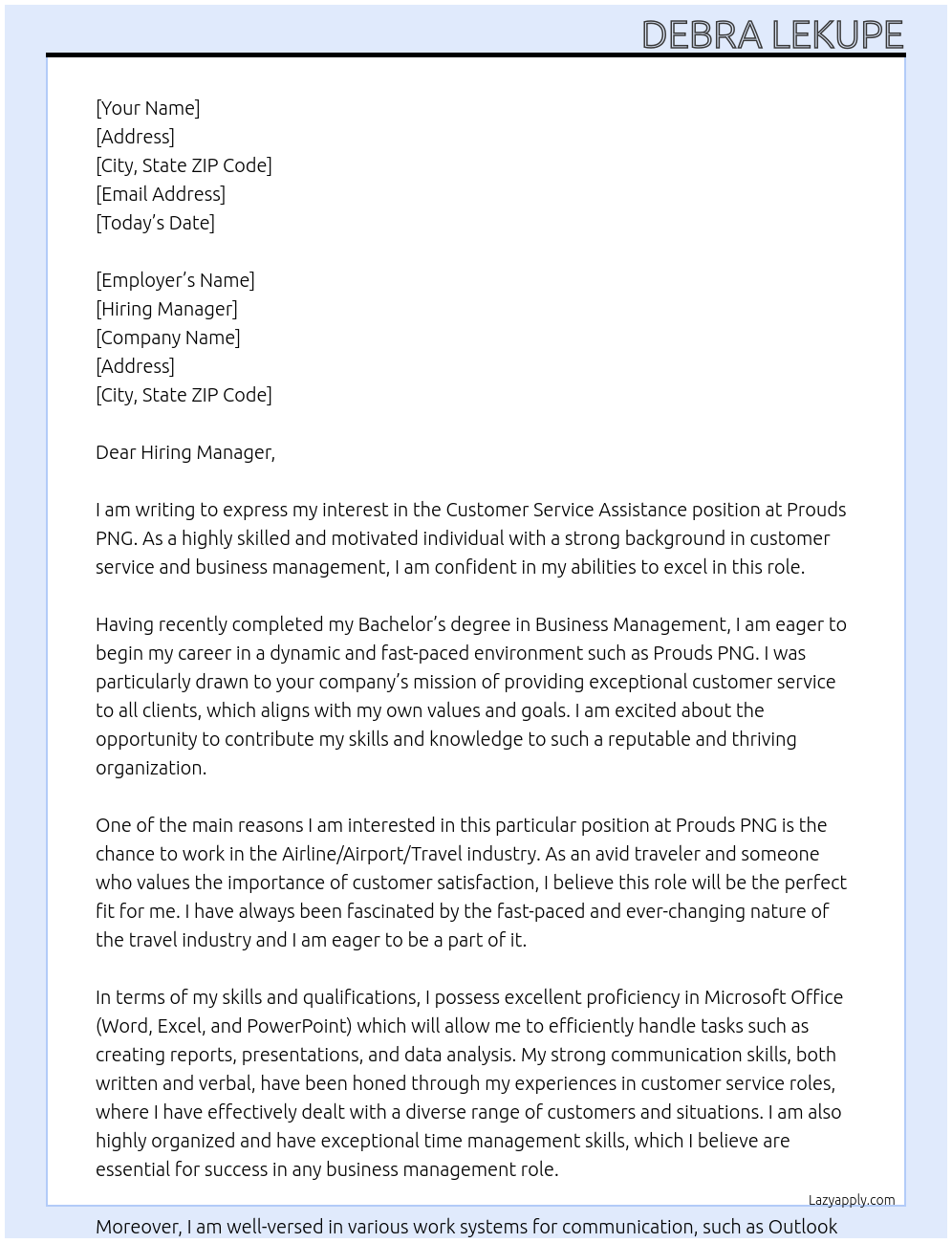 Customer Service Assistance Cover Letter At Prouds PNG