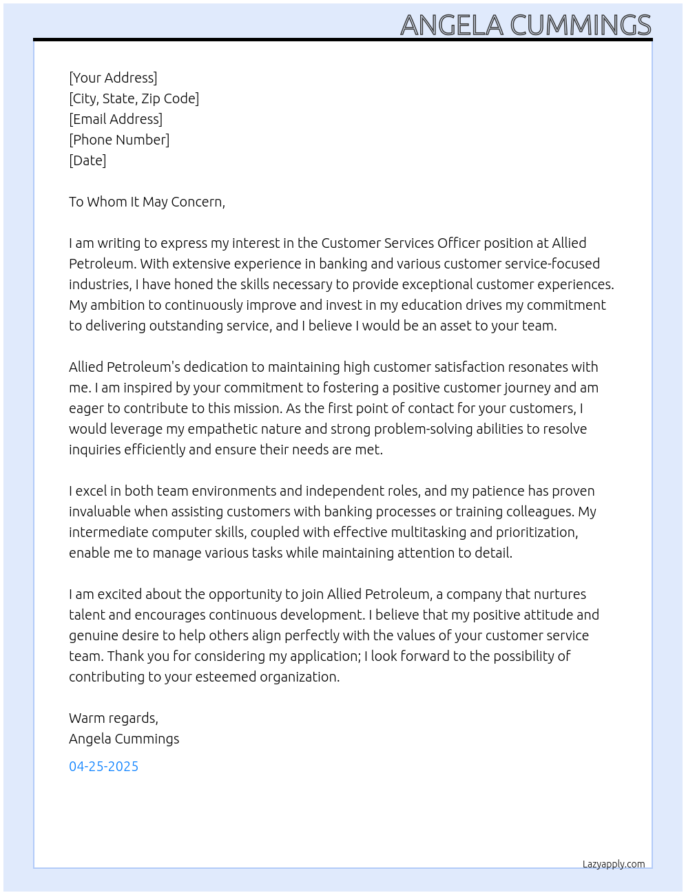With many years in banking and other customer service-focused industries. My ambition is always to exceed my past performance whether that be with customer service resulting in a great customer experience or gaining further education to upskill myself. I love being part of a team and can also work independently. I want to further my ambition and realize investing in myself through education will help this. I have a kind and empathetic nature. One of my strengths is patience whether it be teaching a customer how to bank online or helping a colleague with training.Allied Petroleum is a national bulk fuel distributor and lubricant specialist. We pride ourselves on delivering a great customer services experience from our Customer Servcies Team. We are looking for an enthusiastic individual with a team player attitude to join us. The role is based in Christchurch. As a Customer Services Officer you will be the first point of contact for our customers