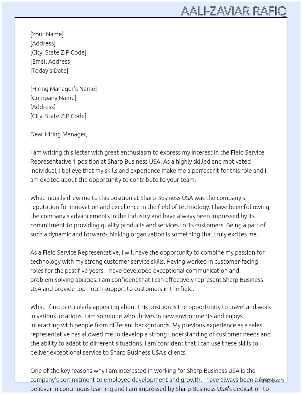 Field Service Representative 1 Cover Letter At Sharp Business USA