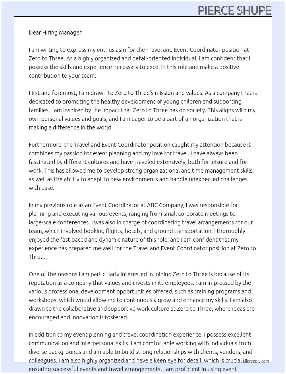 Travel and Event Coordinator Cover Letter At Zero to Three