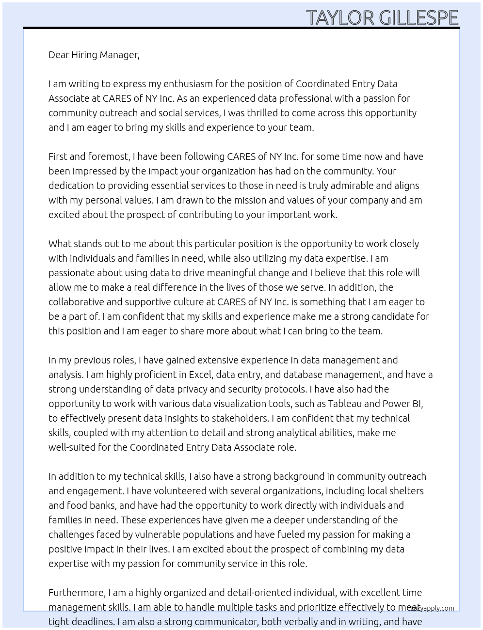 Coordinated Entry Data Associate Cover Letter At CARES of NY Inc.