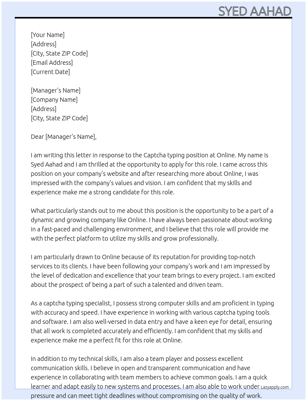 Captcha Typing Cover Letter