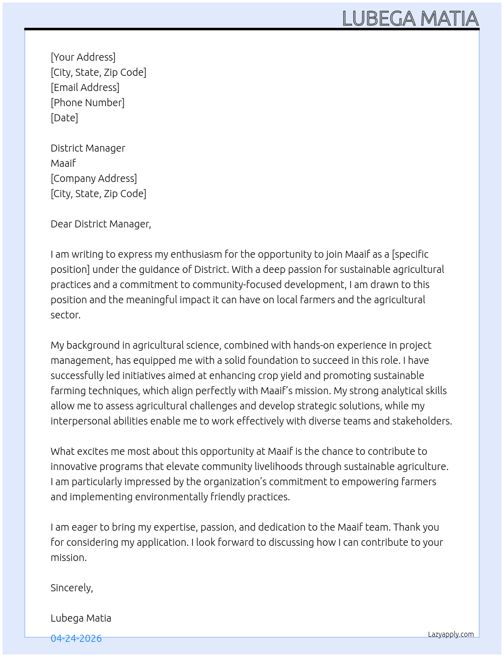 Check out these lubega matia cover letter sample and examples previously used by job seekers to land on job interviews as lubega matia. Use our AI cover letter generator to create a personalized cover letter as lubega matia.