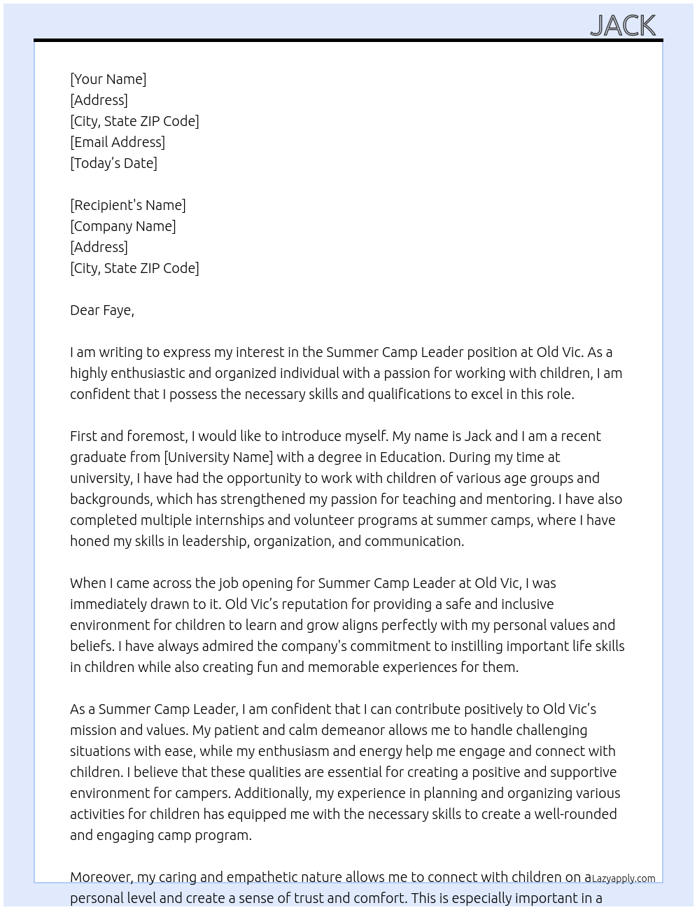 Summer camp leader Cover Letter At Old vic
