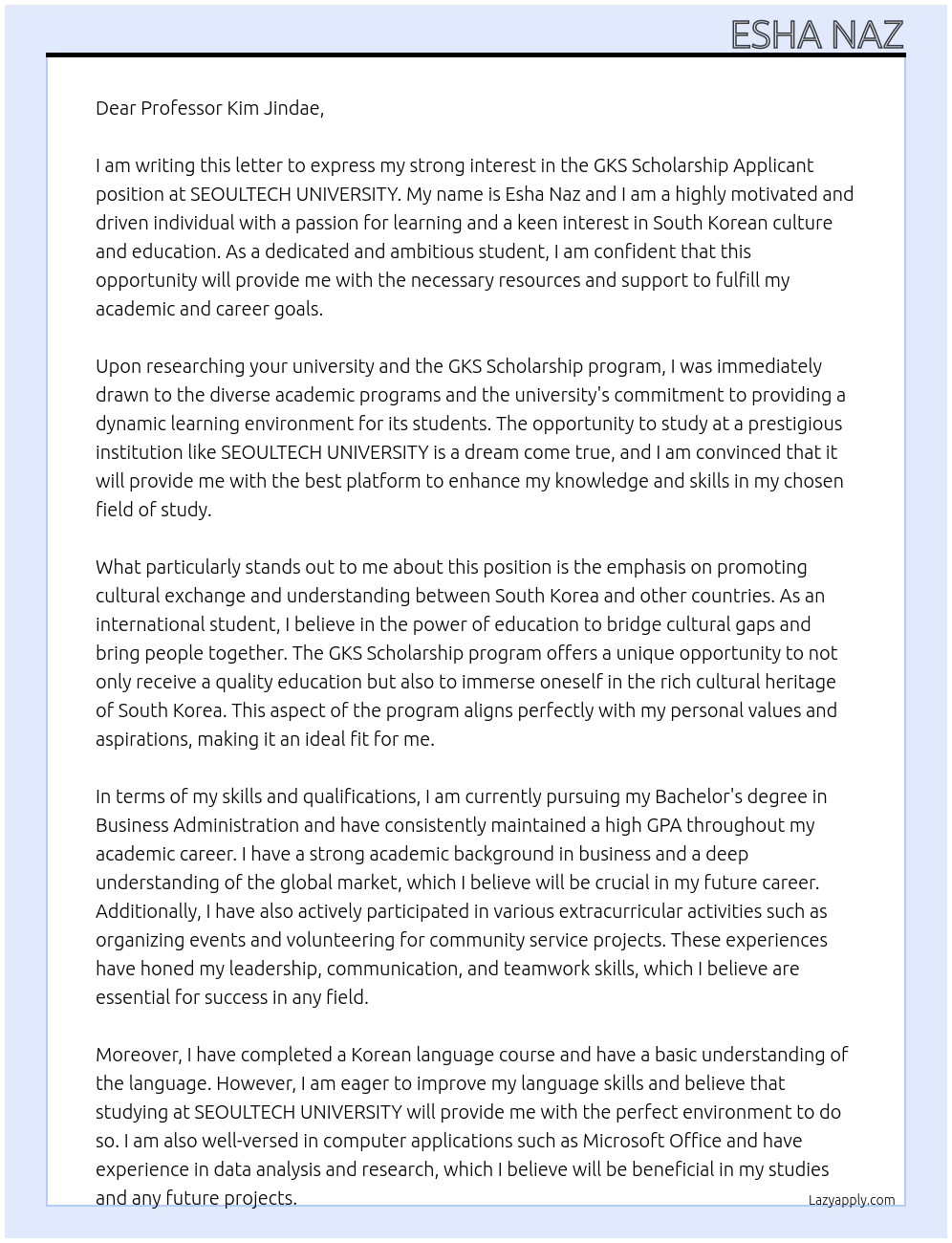 Gks Scholarship Applicant Cover Letter Examples And Template