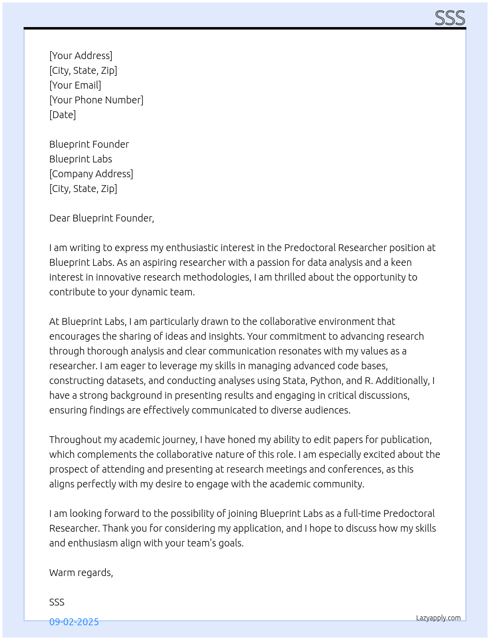 and editing papers for publication. Other duties will arise as needed. All predocs attend and present at regularly occurring research meetings