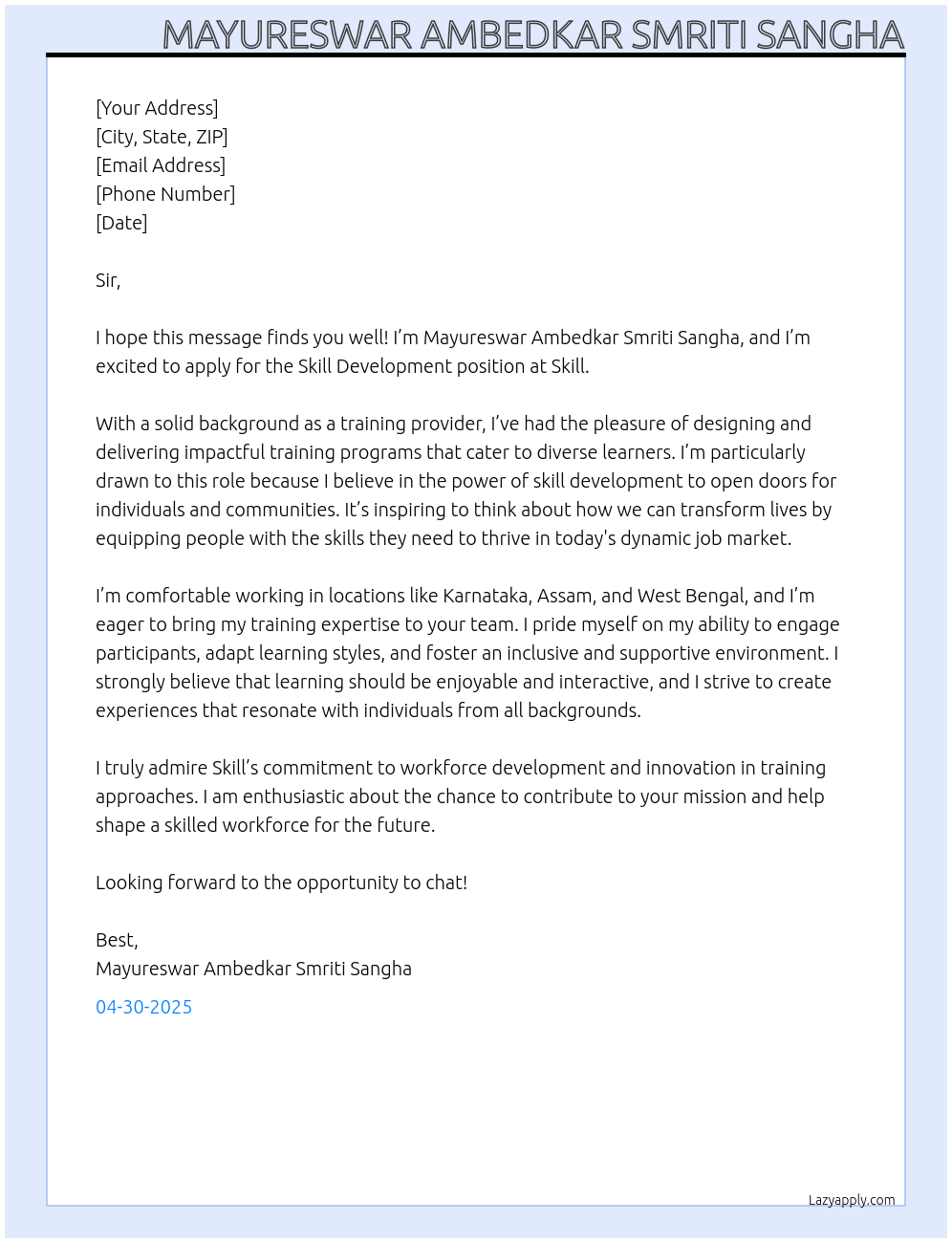 Cover letter for skill development - LazyApply
