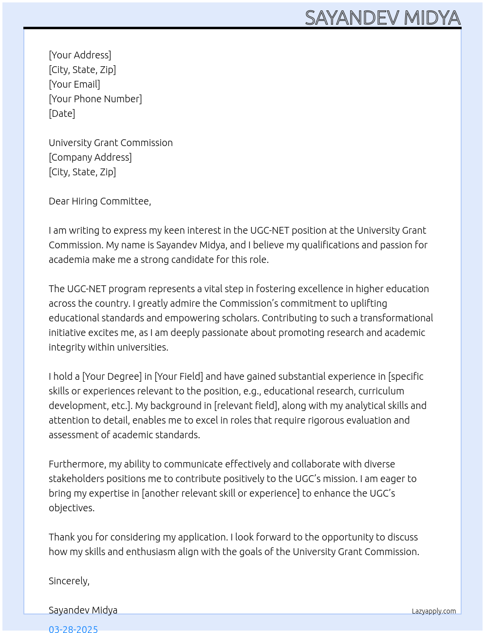 Ugc-net Cover Letter
