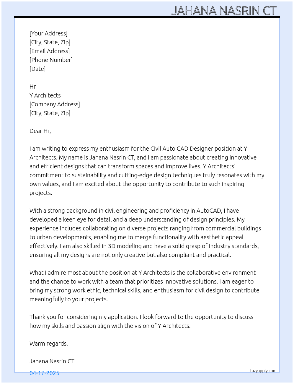 Civil Auto CAD Designer Cover Letter At Y Architects