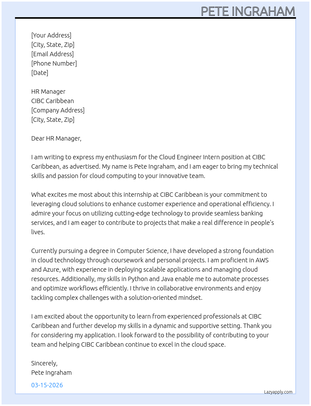 Cloud engineer intern Cover Letter At CIBC Caribbean