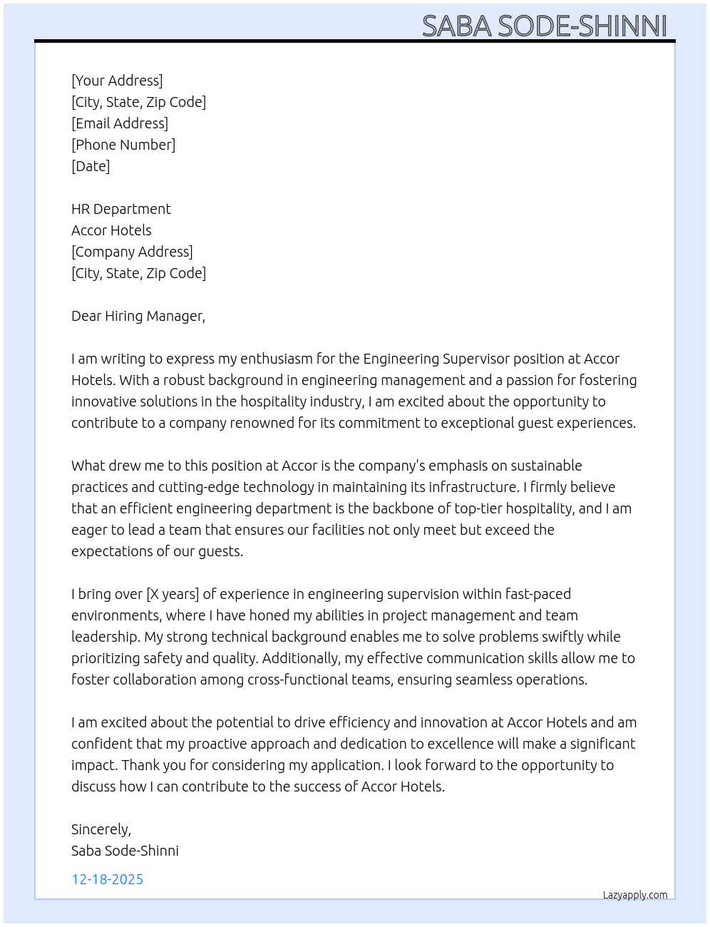 Engineering Supervisor Cover Letter At Dorchester Collection