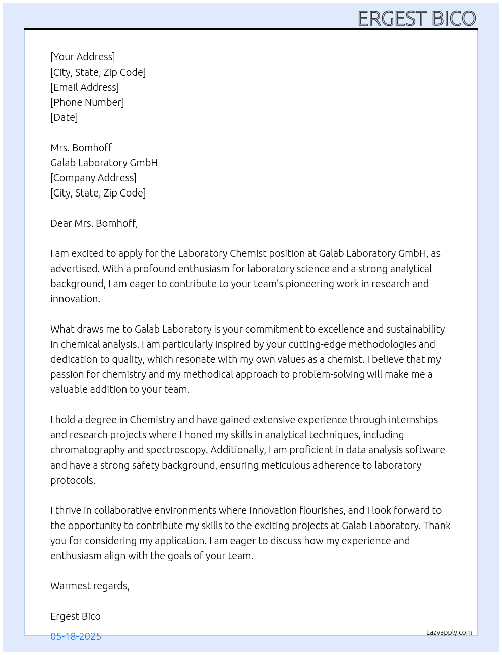 Laboratory Chemist Cover Letter At Galab Laboratory GmbH