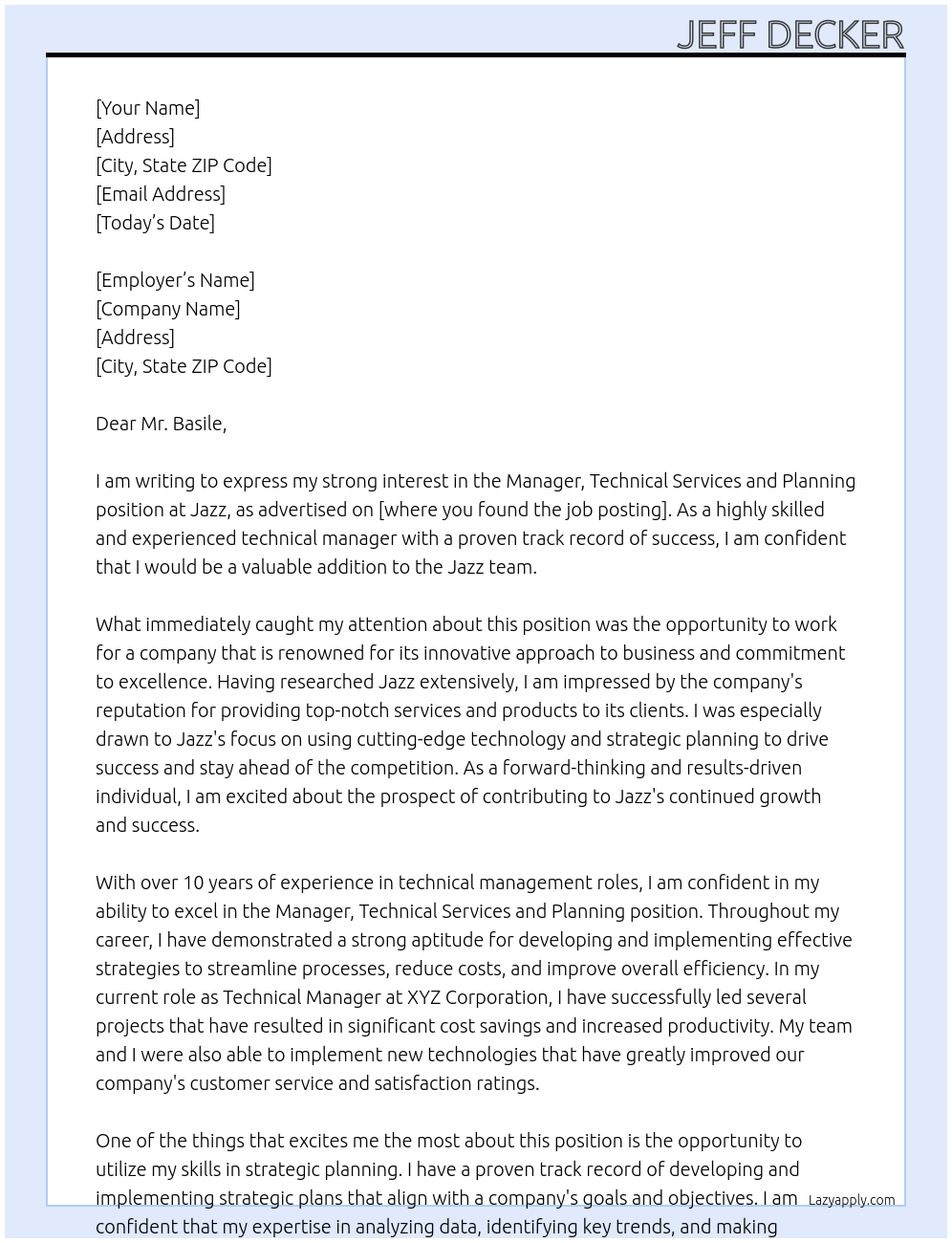 Manager, Technical Services And Planning Cover Letter Examples And Template